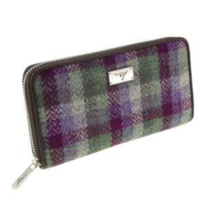 Harris Tweed ' Staffa' Long Zip Purse in Green Small Check |