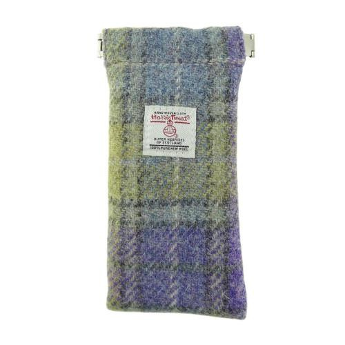 Harris Tweed Glasses Case in Muted Lilac / Lime Green Tartan |