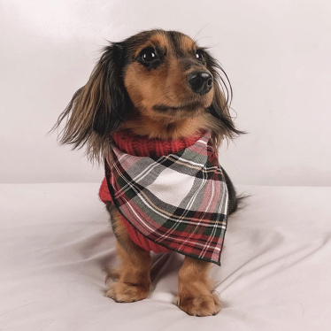A red and white tartan plaid wool bandana, perfect for your furry friend! Easy to fit and adjustable