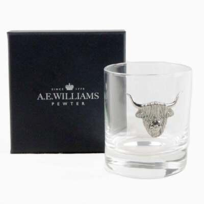 celebrate Scottish charm with our distinctive whisky tumbler, featuring a meticulously crafted pewter Highland Cow emblem. Price