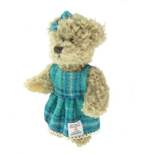 25cm Girl Teddy Bear with Harris Tweed Clothing in Teal & Blue Check |