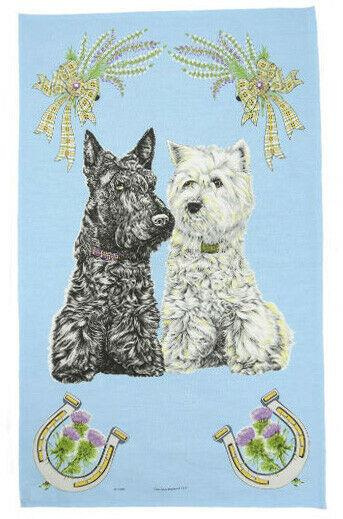 Cute Scottie and Westie Tea Towel. 100% cotton.