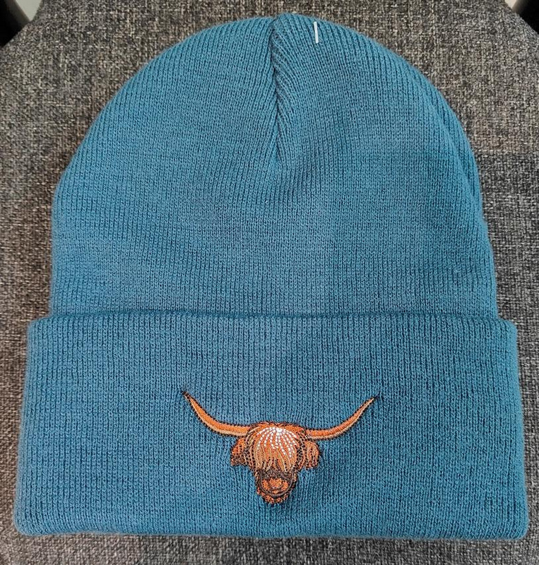 ![]() Cuffed Embroidered Scottish Highland Cow Beanie, Slouchy style beanie. Price