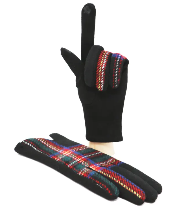 Tartan Touchscreen Gloves - Black Stewart
