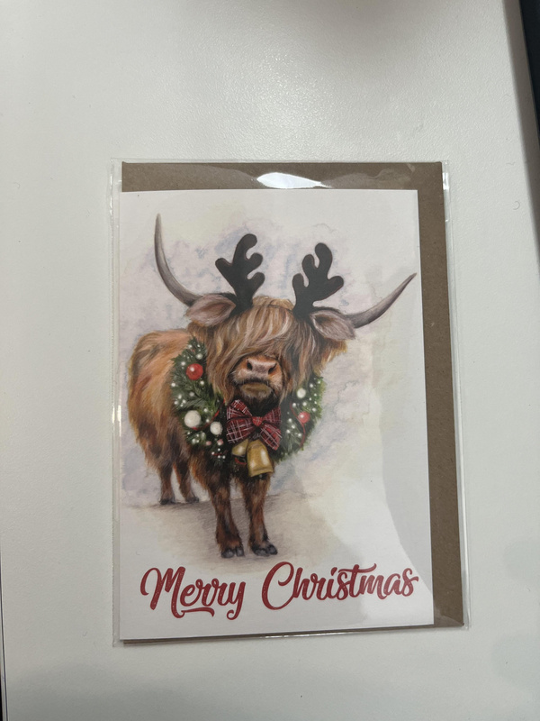 A6 (4x6"). Professionally printed in Lanark, Scotland. Each greeting card is folded & packed in a small plastic pocket and comes with a brown kraft envelope. Price