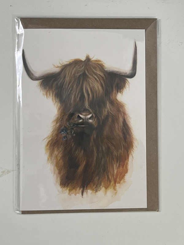 The Jaggy Thistle Coo (Greeting Card) | Highland Cow Card |