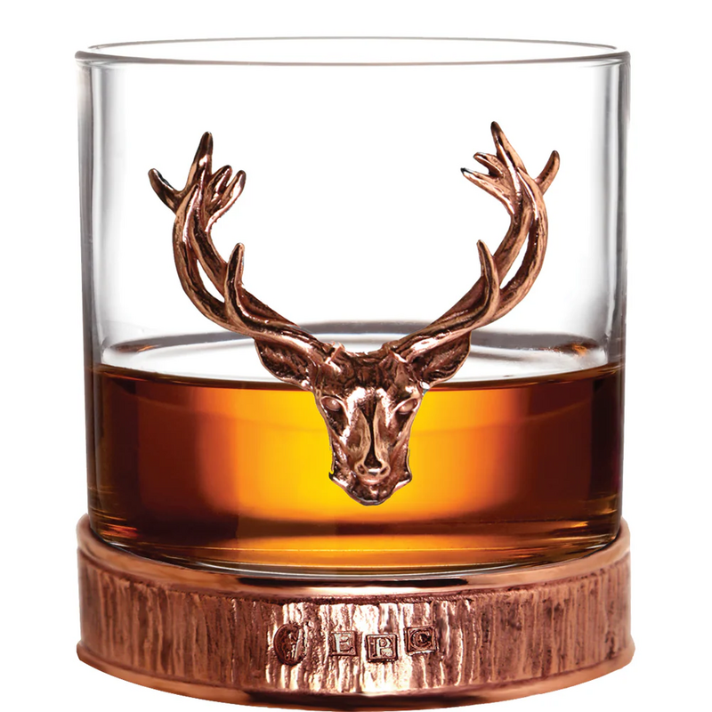 A wonderful gift for that loved one who enjoys a tipple and has a keen eye for style, is this fabulous 11oz stag head whisky tumbler finished in a striking copper finish. The glass stands 9cm tall, with a capacity of 312ml and features a copper bark effect banding at the base to add both an eye-catching appearance and satisfying weight. The real headline act of the tumbler however is the stunning copper stag head badge which adorns the front and brings some real style to the package. Each glass features the touchmark of our company which adds authenticity to the antique style finish. Each tumbler is supplied in our luxury presentation gift box which is wrapped in a quality black velvet gift bag. Price