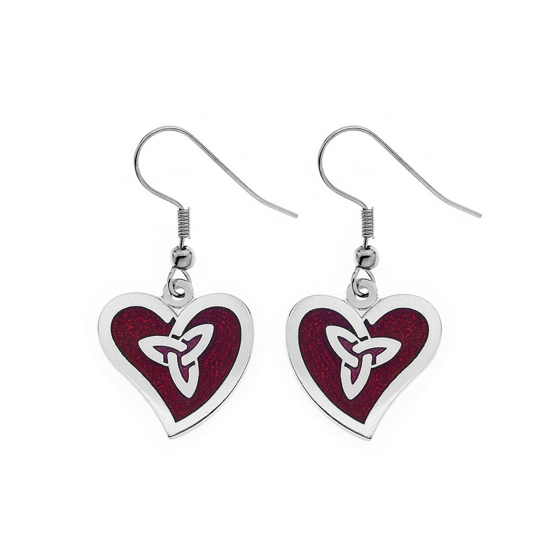 Enamel/Copper/Brass/Rhodium Plated Trinity, Wave and Heart Earrings in Red. Price